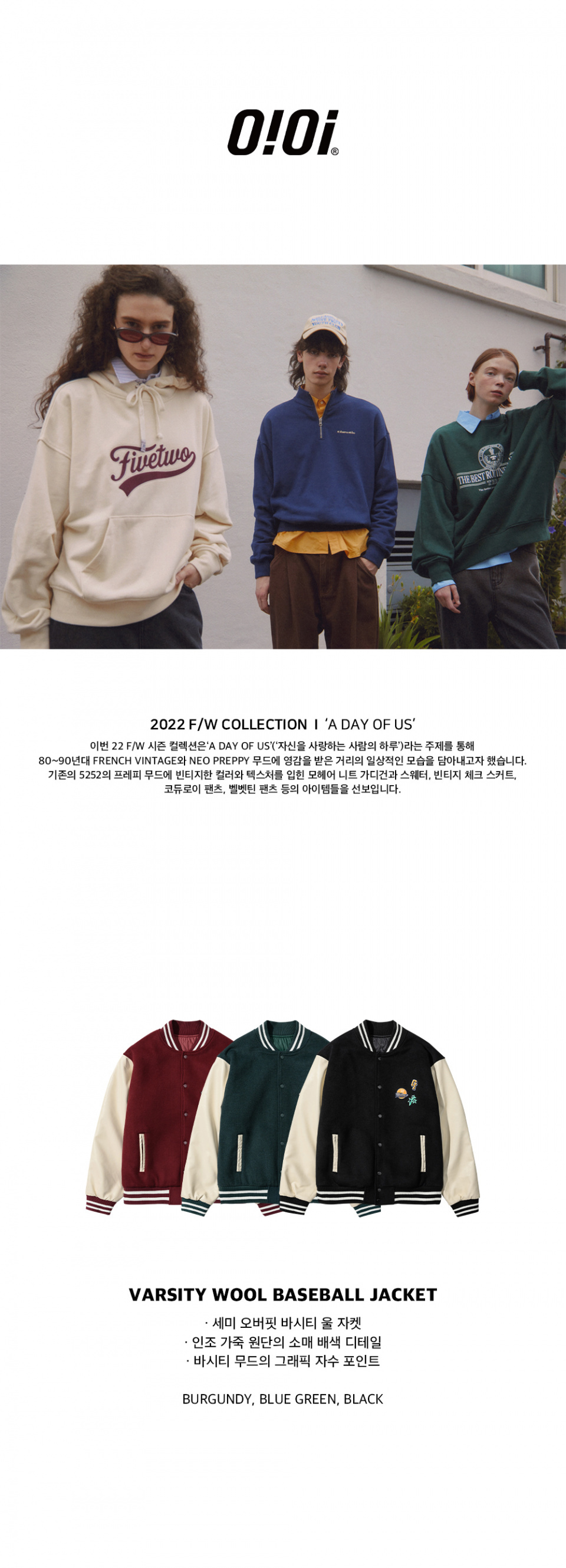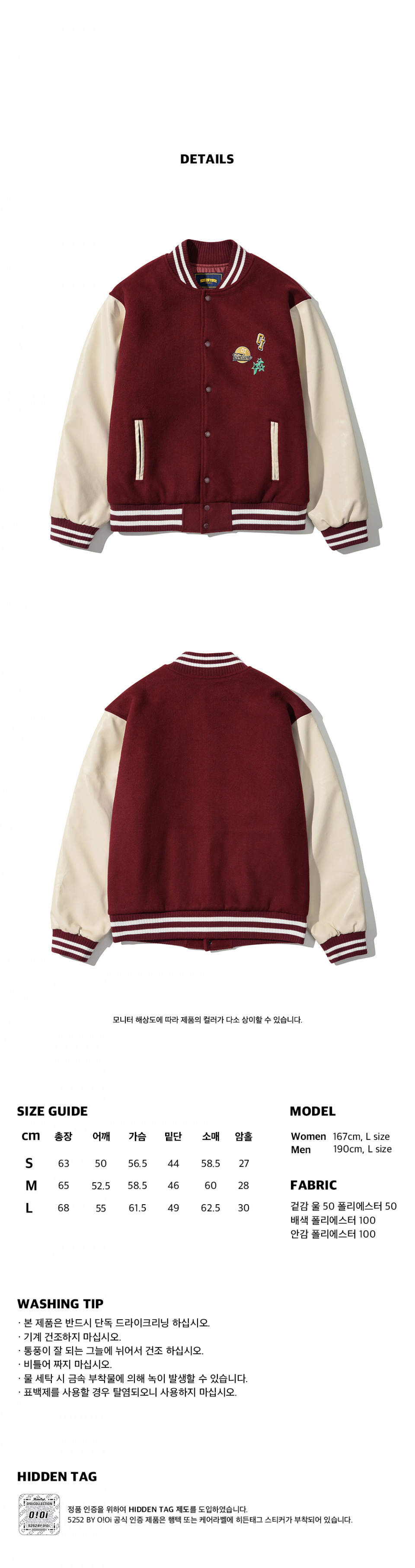 5252 By OiOi 22FW VARSITY WOOL BASEBALL JACKET - BURGUNDY