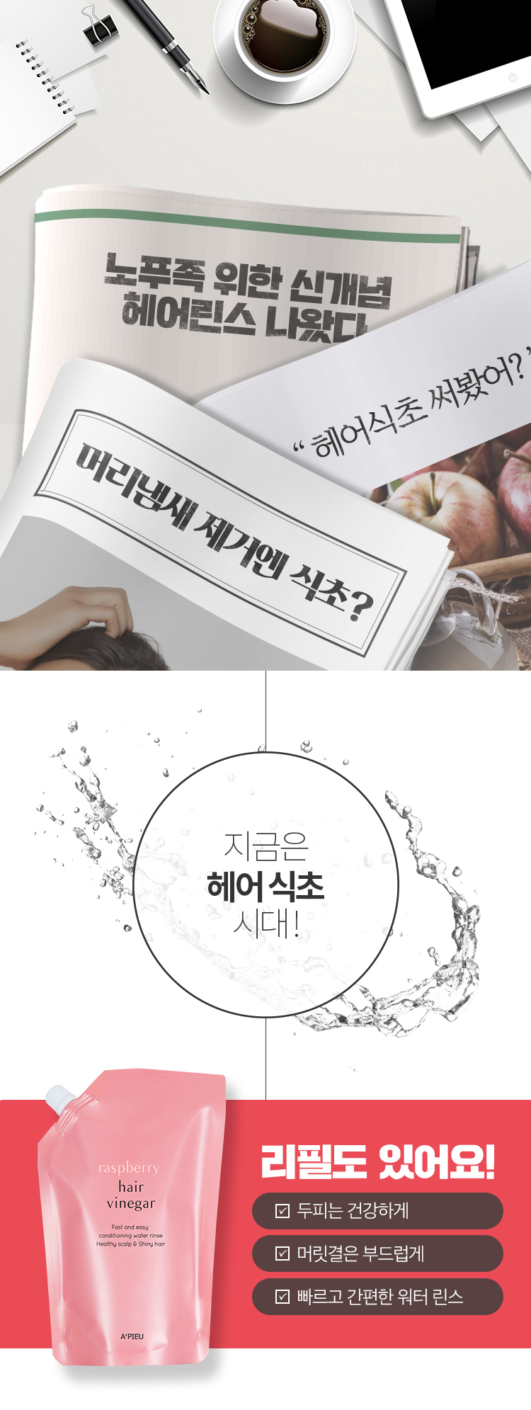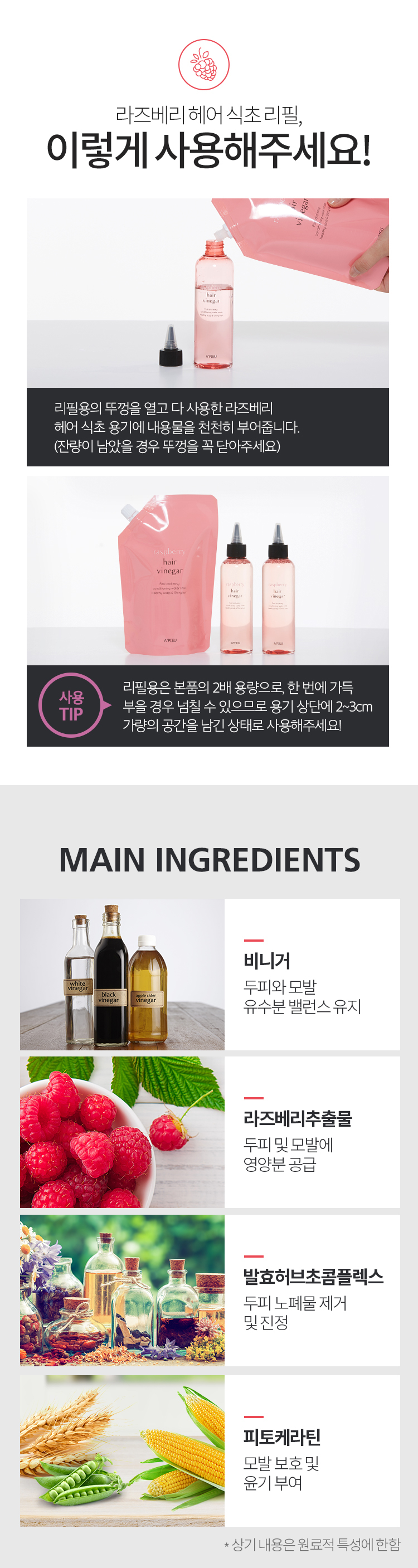 A'PIEU Raspberry Hair Vinegar 400ml [Refill]