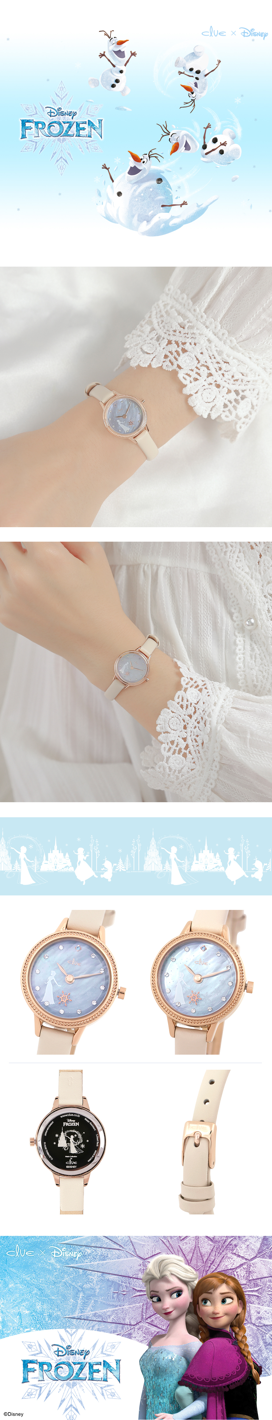 CLUE x Disney Winter Elsa Snowflake Moving Ivory Leather Watch CL2G19B04LPI