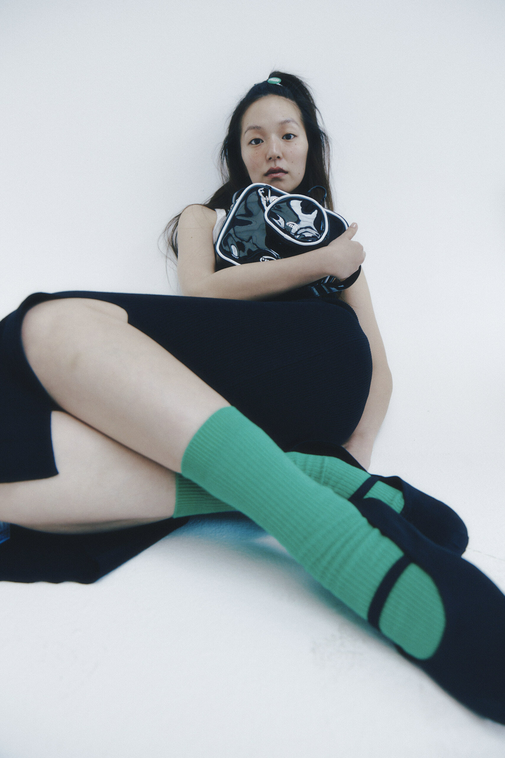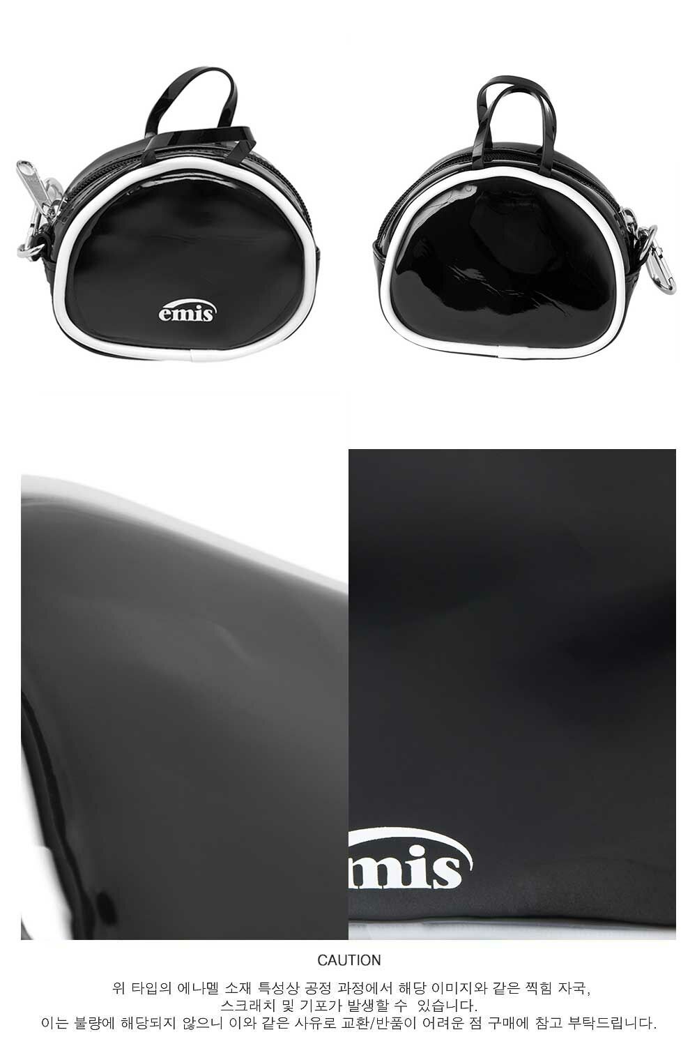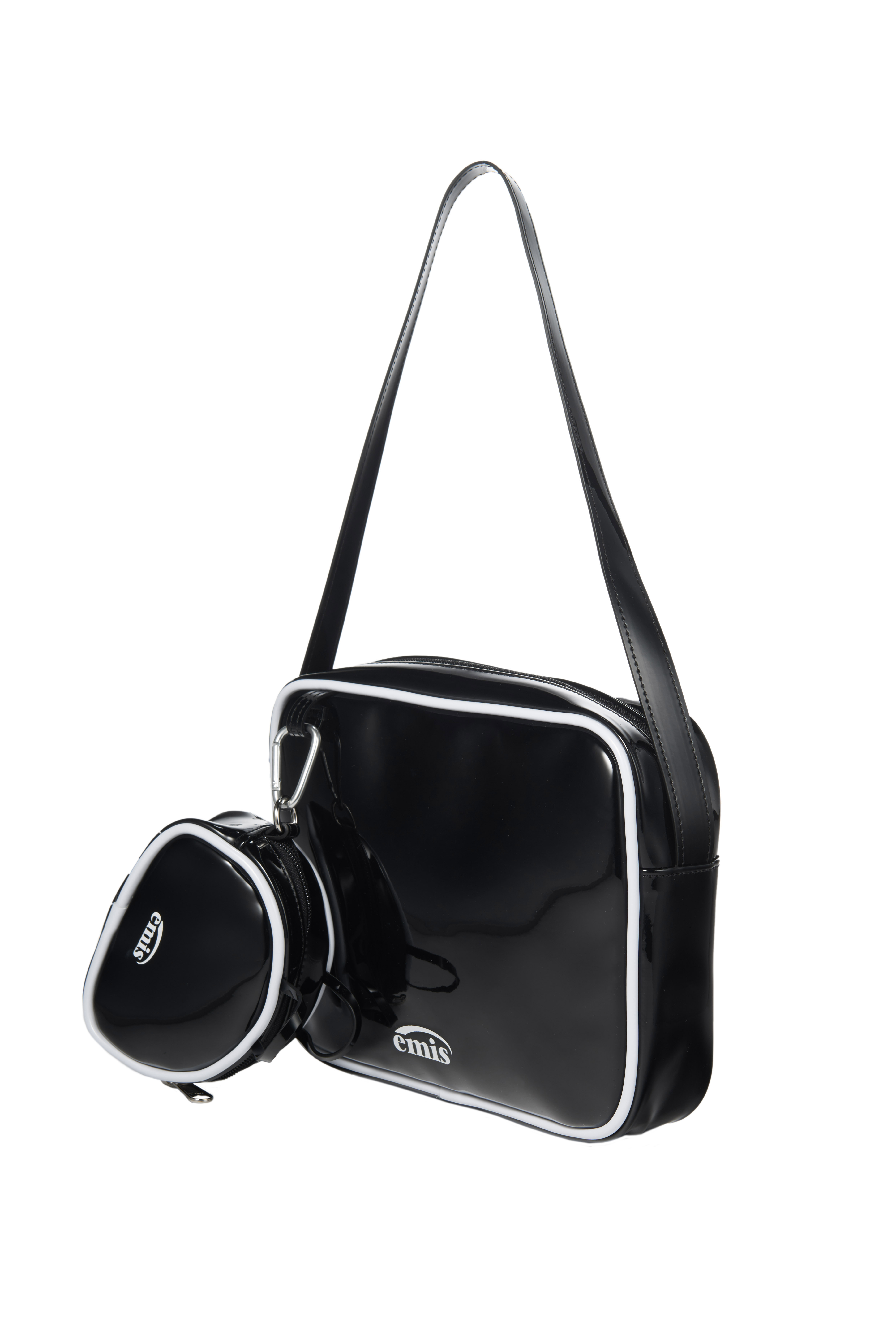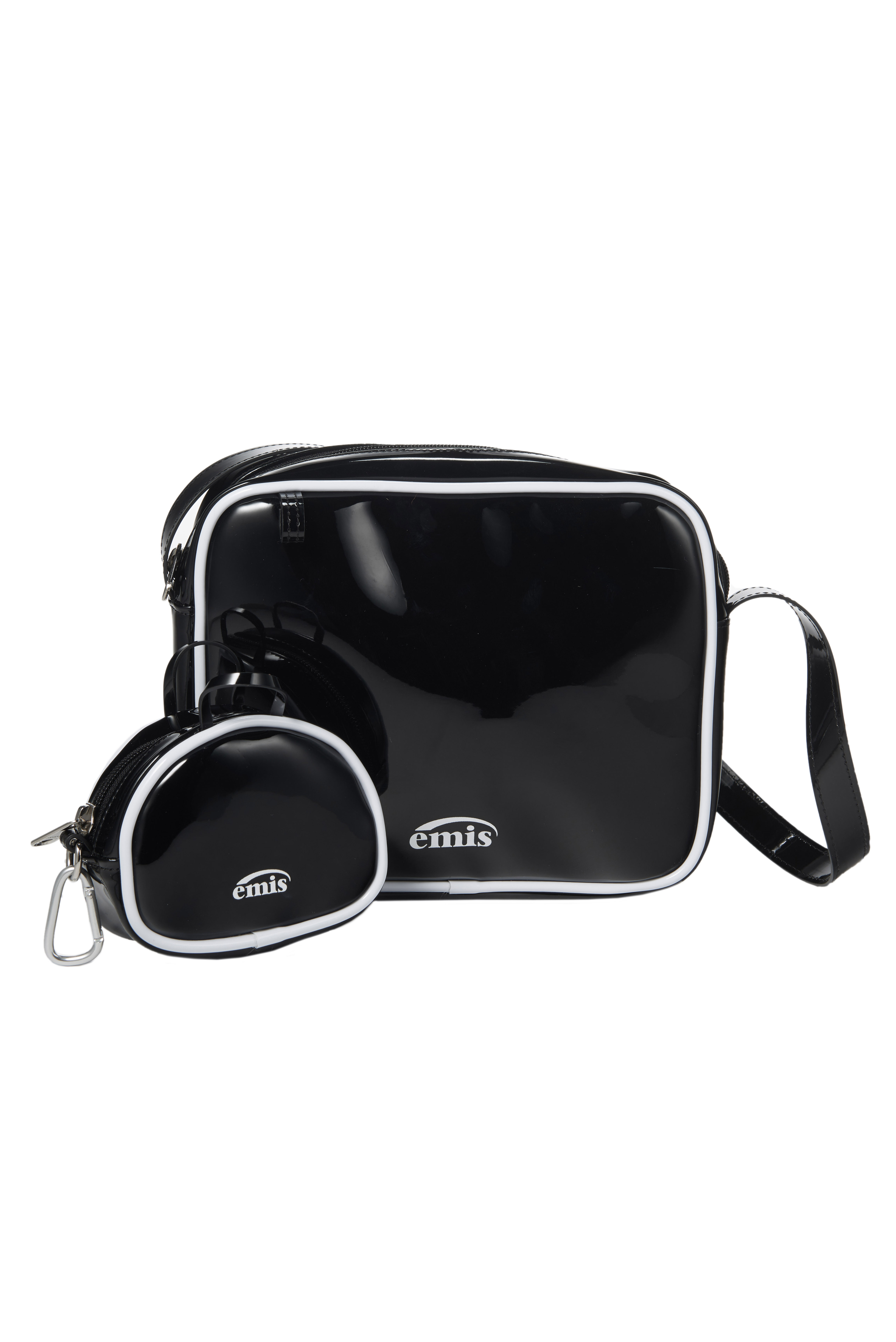 emis ENAMEL SHOULDER BAG WITH COIN PURSE SET - BLACK