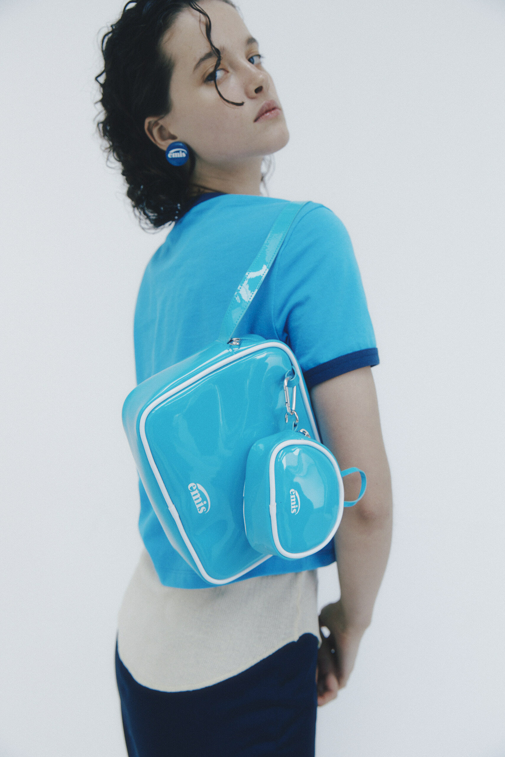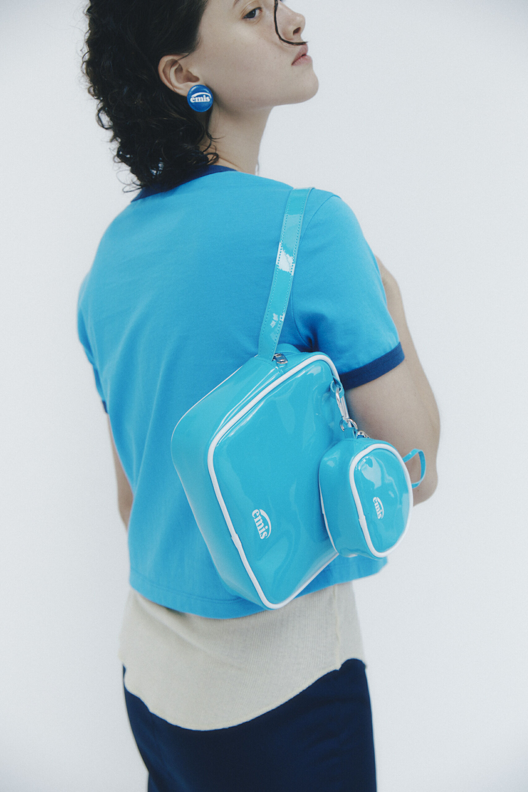 emis ENAMEL SHOULDER BAG WITH COIN PURSE SET - LIGHT BLUE