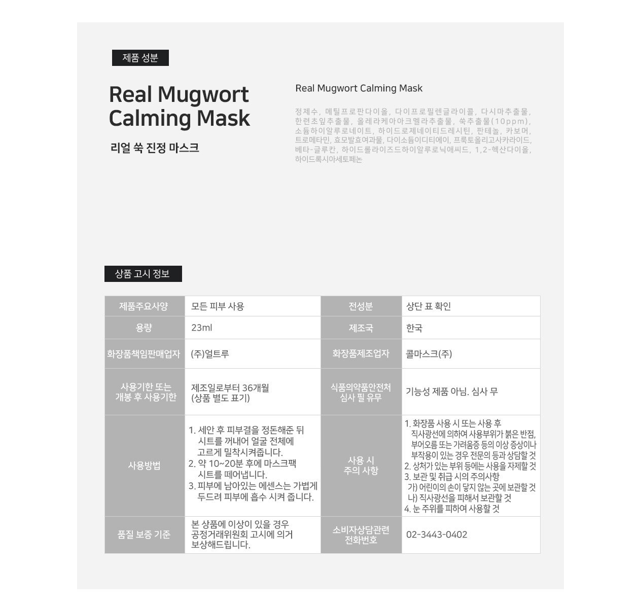 I'M Sorry For My Skin Real Mugwort Calming Mask