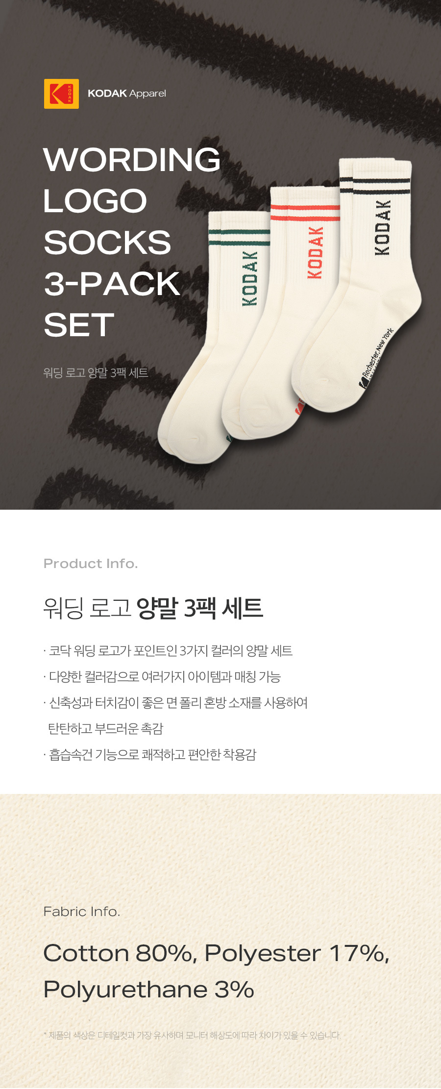 Kodak Wording Logo Socks 3-Pack Set K2343LSC21IVR