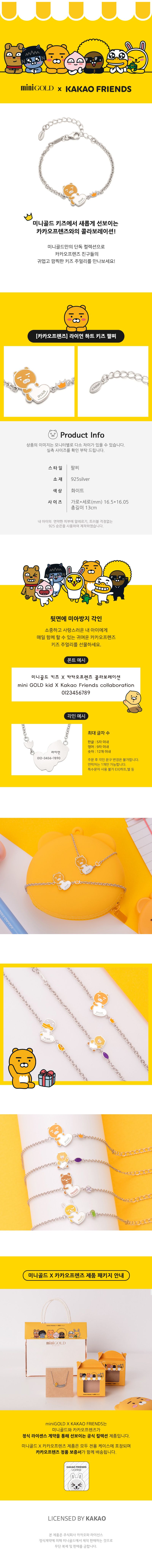 MiniGOLD x Kakao Friends Heart Kids Bracelet BLKS1162 - RYAN