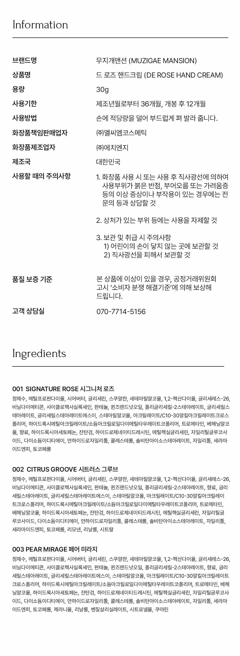 MUZIGAE MANSION De Rose Hand Cream 30g