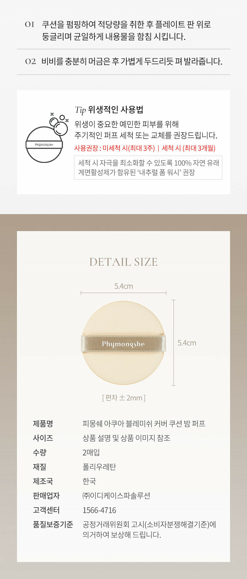 Phymongshe Aqua Blemish Cover Cushion Balm Puff [2PCS]