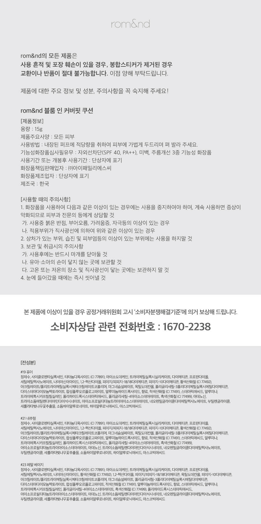 Romand Bloom In Coverfit Cushion 15g