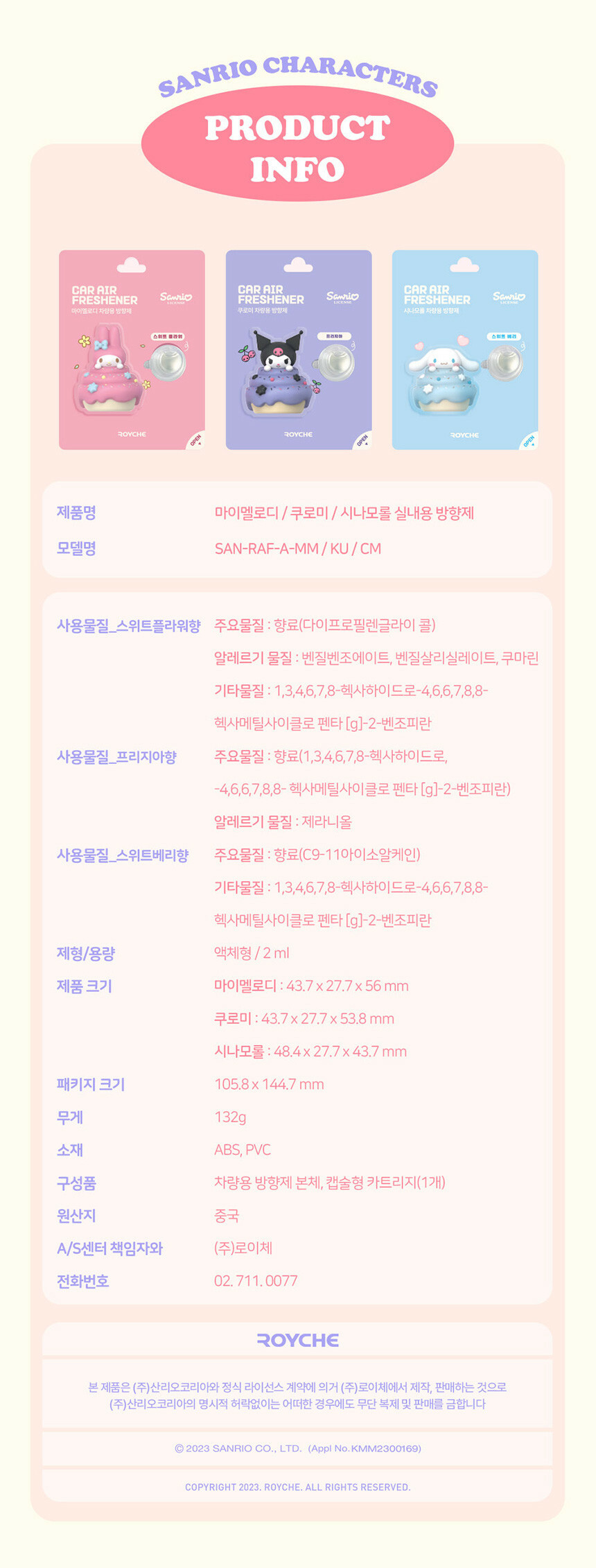 ROYCHE Sanrio Car Air Refresher