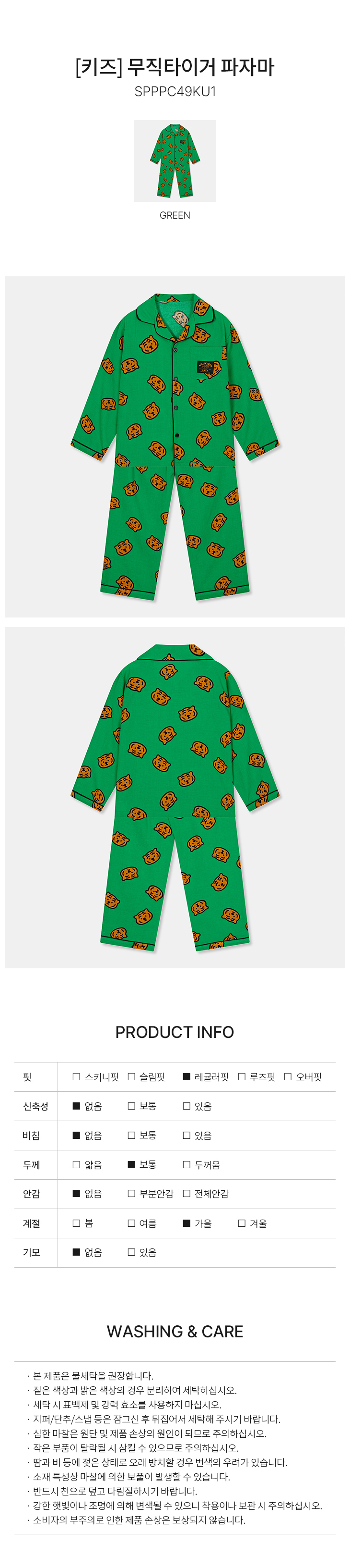 SPAO x Muzik Tiger Kids Pajamas (GREEN)_SPPPC49KU1