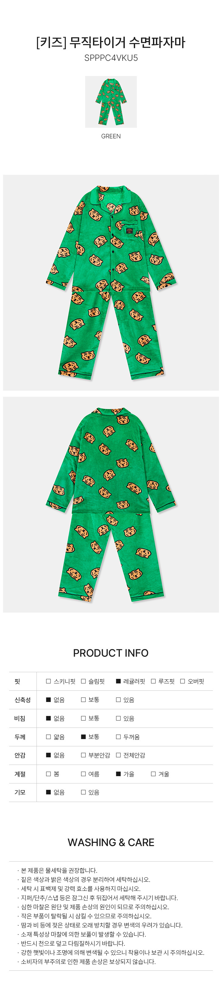 SPAO x Muzik Tiger Kids Pajamas (GREEN)_SPPPC4VKU5