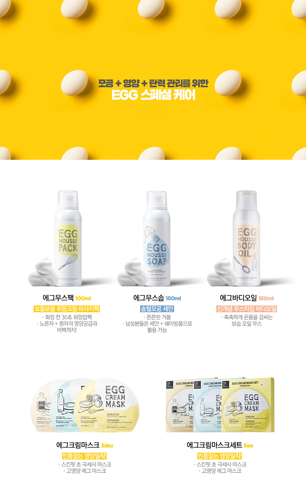 Too Cool For School Egg Cream Mask Set [5PCS]