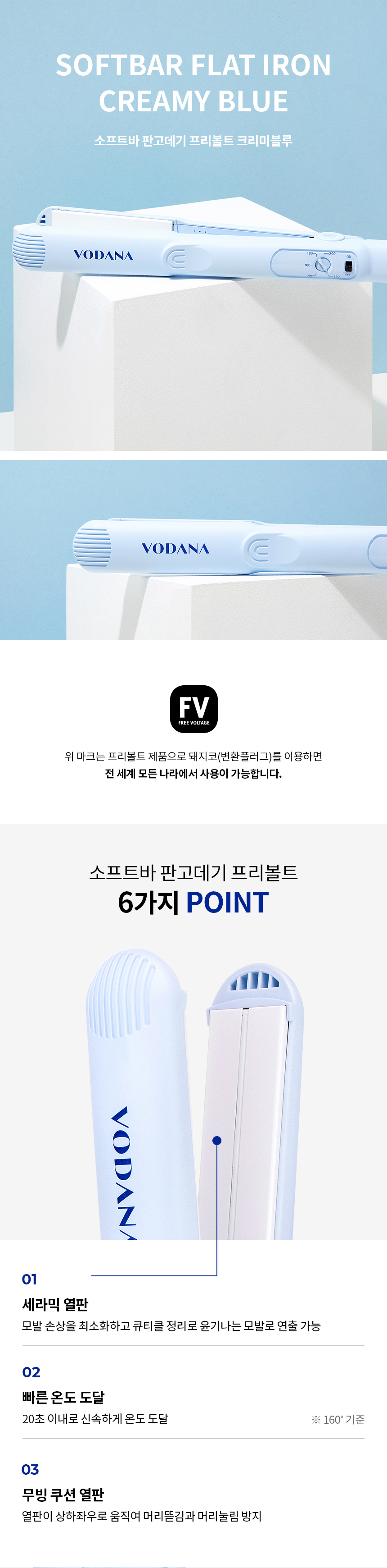 VODANA Soft Bar Flat Iron - CREAMY BLUE