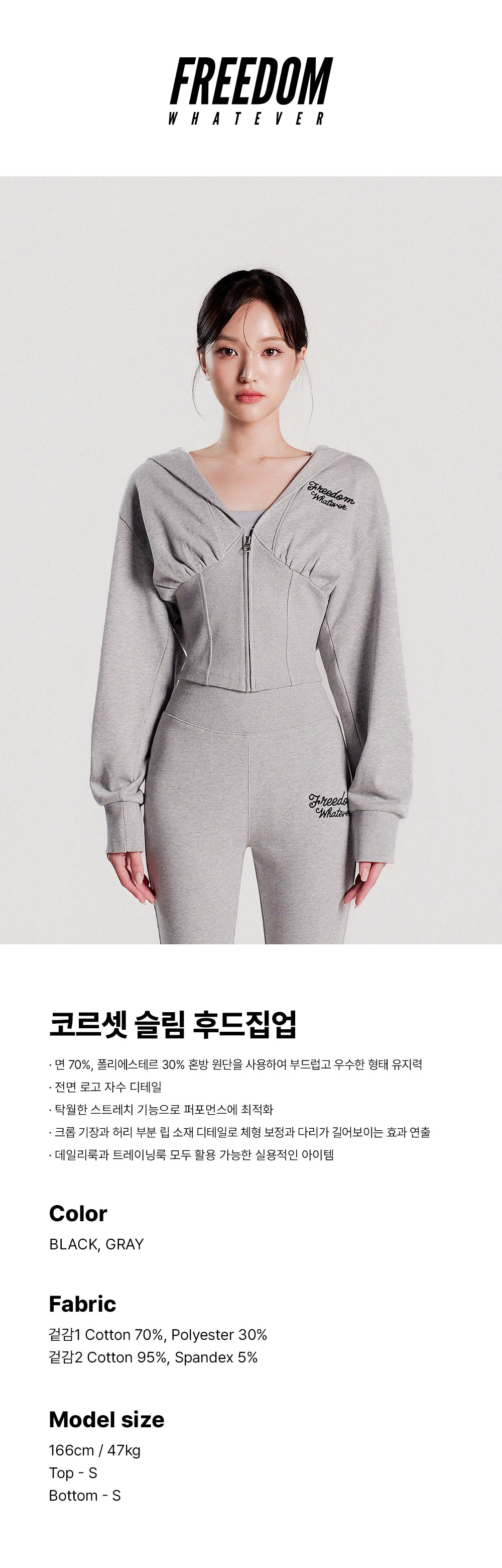 FREEDOM Corset Slim Hooded Zip-Up - GRAY