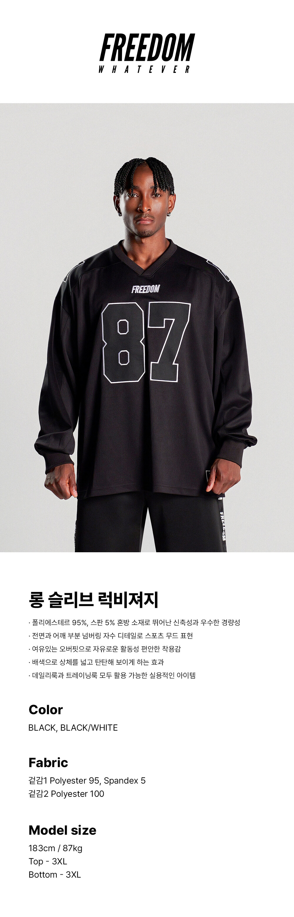 FREEDOM Long Sleeve Rugby Jersey - BLACK