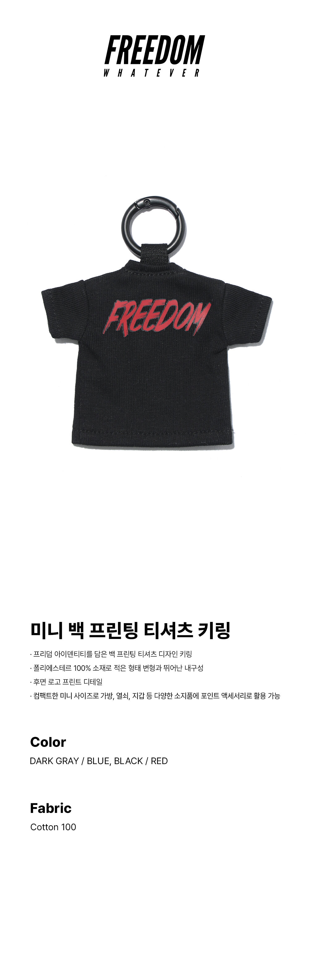 FREEDOM Mini Bag Printed T-Shirt Keychain - BLACK/RED