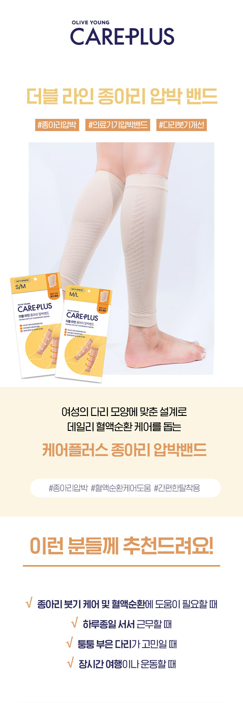 Olive Young Care Plus Double Line Calf Compression Sleeves