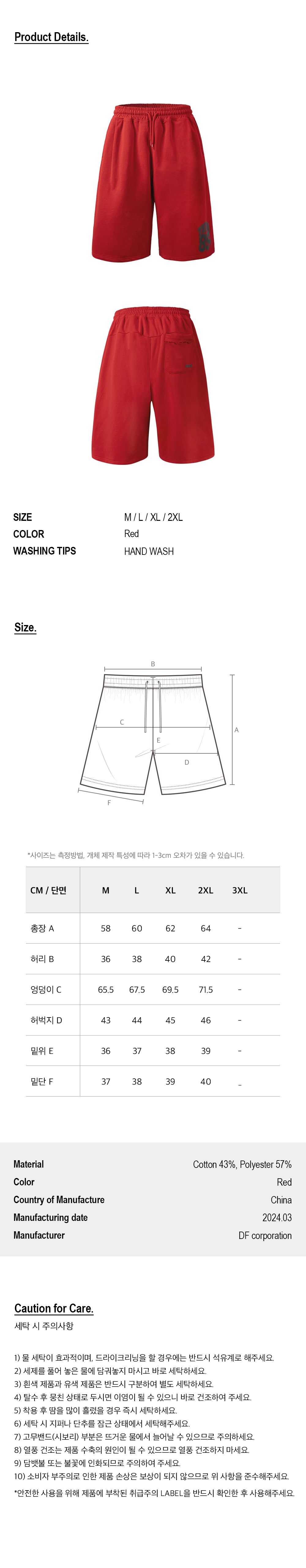 HDEX Classic Pintuck Sweat Shorts - RED