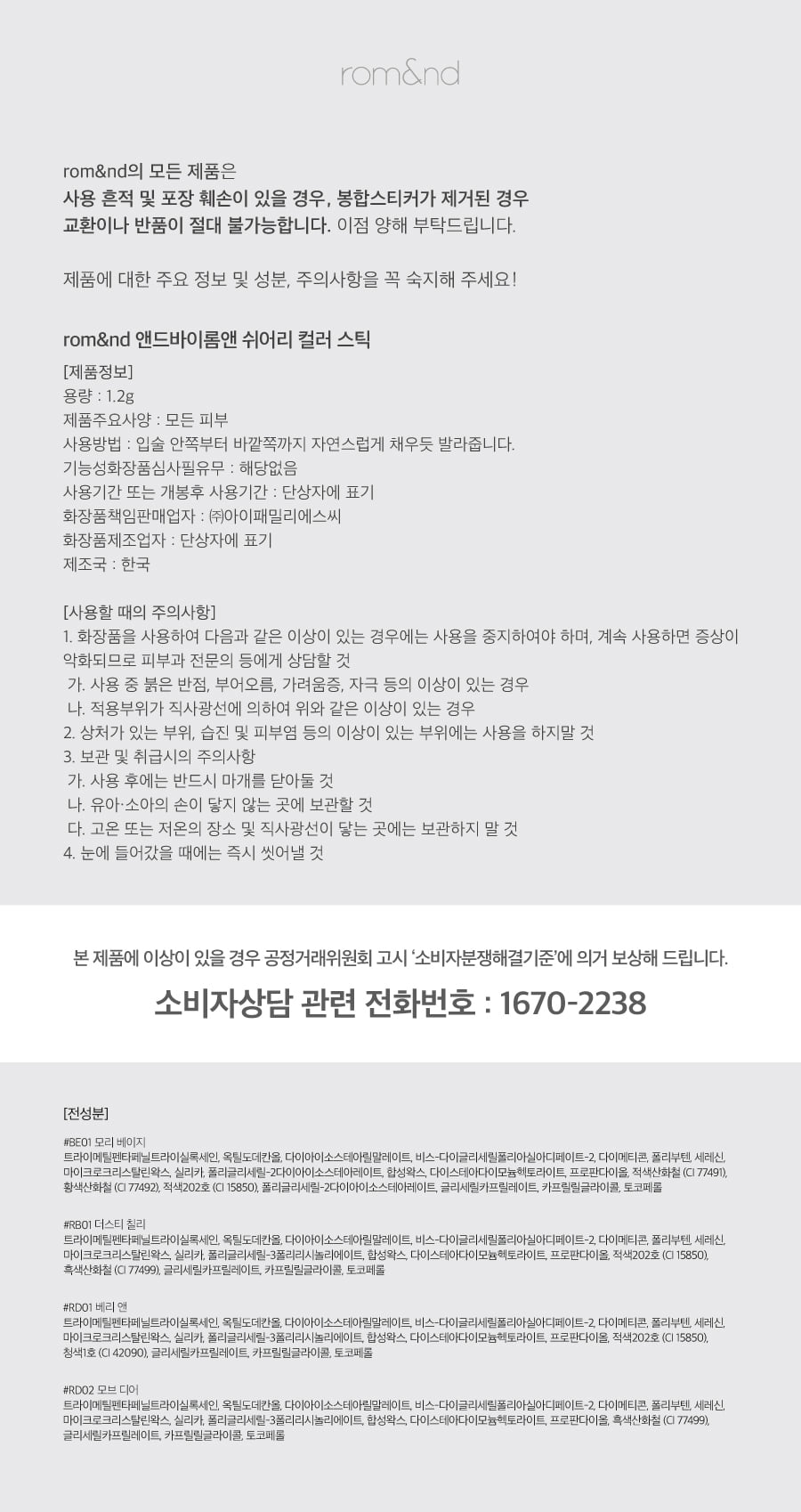 &nd by Romand Sheery Color Stick 1.2g