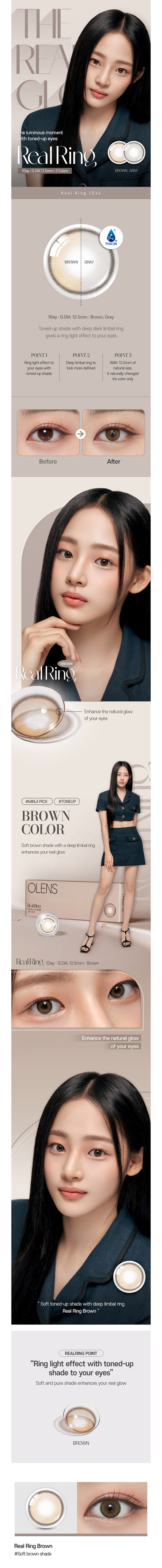 [23/02 - 06/03] OLENS Real Ring BROWN One Day Soft Contact Lens [10P]