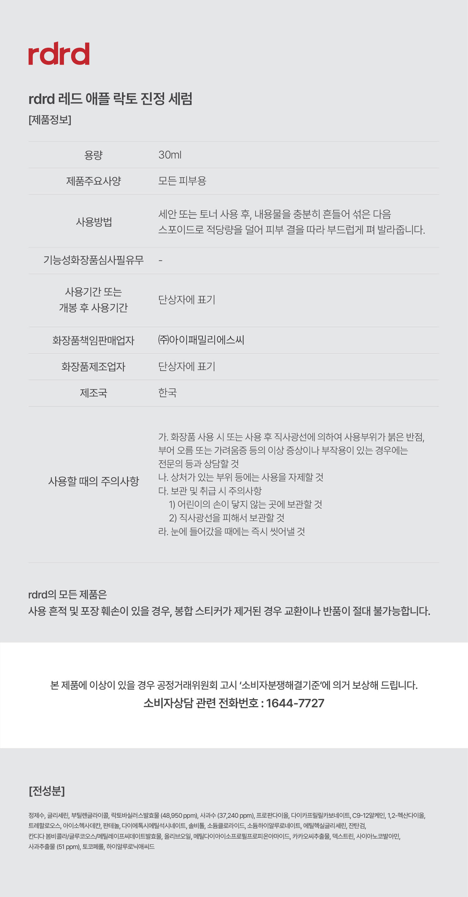 [01/03 - 31/05] rdrd Red Apple Lacto Calming Serum 30ml